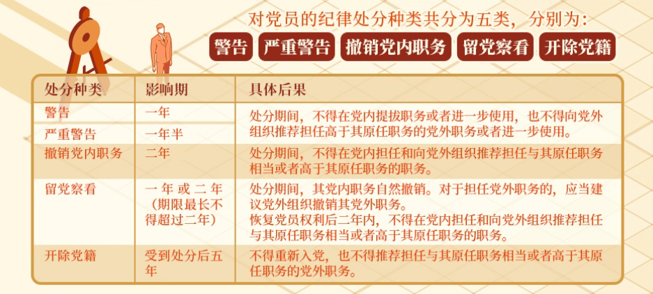 [党纪微课堂]对党员的纪律处分有哪些,影响期各多长