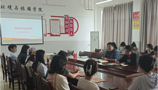 (教工通讯员 李海)5月22日下午,资环学院召开2023届毕业生座谈,学院党委书记杨霄、党委副书记鲁宏图、学工办主任李海、2023届毕业生代表参加座谈会。活动由党委书记杨霄主持。