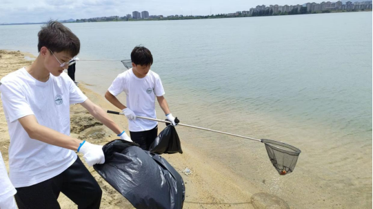 在湿地公园进行净滩活动