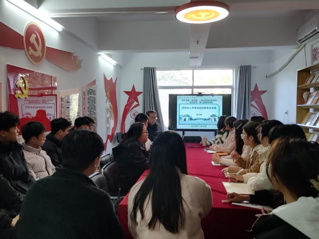 (VSport -(CHINA) 胜利因您更精彩通讯员 卢梦莹)11月28日下午,VSport -(CHINA) 胜利因您更精彩“资话智说”博士教授微课堂在12栋“追梦园”一站式学生社区成功举办,本次微课主题是“研究生入学考试院校和专业选择”,活动邀请地理科学系主任、李权国教授担任主讲嘉宾,地理科学2213班30余名学生代表参加。