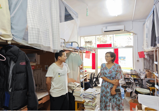 走访过程中,黄文仔细询问留校学生的学习安排与生活状况,关切地了解同学们留校的原因、学习进展及遇到的实际困难。在与同学们亲切畅谈中,她鼓励大家珍惜暑期时光,合理规划学习与休息,用好学校资源提升自我,同时叮嘱大家遇到问题及时与学院沟通,学院将全力提供支持与帮助。针对宿舍安全,邓仕元着重强调了规范用电、保持通风与环境卫生等事项,特别提醒大家杜绝使用大功率电器、不乱拉乱接电线,共同守护安全整洁的“小家”。