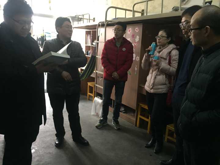 (通讯员 姜大伟)2月24日下午四点,资环学院院长张弢、党委书记杨霄、副院长孙小舟带领系主任、各班班主任、辅导员深入学生宿舍。检查了宿舍存在的各种安全隐患,听取了辅导员对学生到校情况的汇报,就学生考研、就业、教材、寒假社会实践等情况与学生交流谈心。