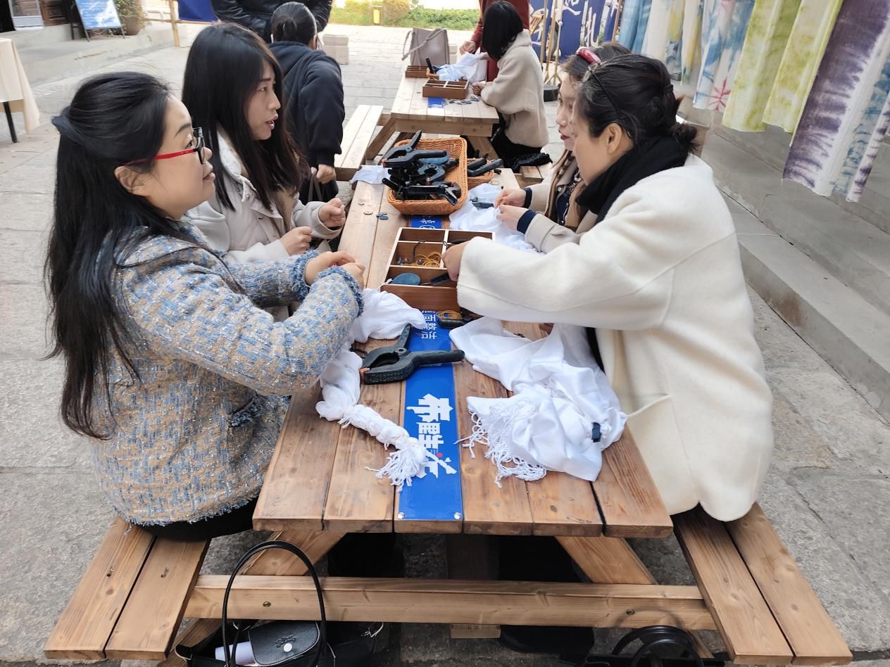 扎染作为中国民间传统染色工艺,承载着数千年的历史传承和深厚的文化底蕴,是中华民族优秀传统文化的璀璨明珠。活动现场,专业扎染老师从扎染的起源与发展历程讲起,深入剖析了其工艺流程背后蕴含的古人智慧,以及独特的艺术特点,展现了中华传统工艺的独特魅力,让女教师们对这一非遗项目有了更为全面、深入的认识。大家认真聆听,沉浸其中,对扎染艺术展现出极高的热情与浓厚兴趣。活动中,女教师们纷纷投入实践。在扎染老师的悉心指导下,大家或是发挥个人创意、独自创作,或是两两结伴、协作完成,用纱线、皮筋等工具对布料进行扎结,再小心翼翼地蘸取各色染料进行染色。整个过程中,女教师们充分发挥自身创造力,将传统文化与个人巧思相融合,在实践中感受传统工艺的独特魅力,传承中华优秀传统文化。