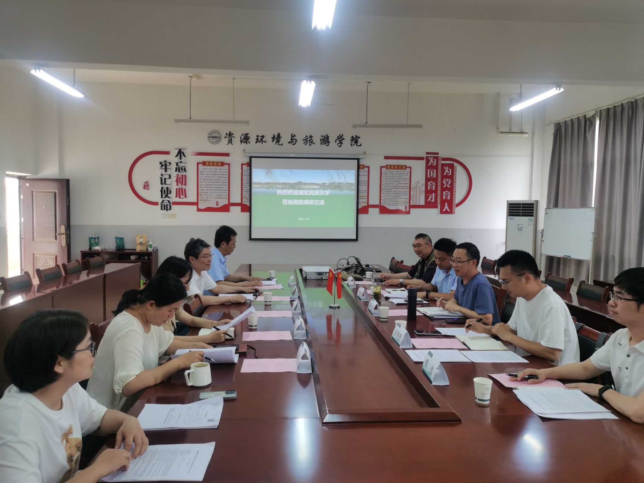 (通讯员:何晓丽)为进一步加强校际合作,促进地理科学学科建设与发展,2025年5月27日下午,湖北民族大学林学园艺学院胡海剑副书记一行赴我院开展地理科学专业建设交流。资环学院院长张弢,地理科学系主任李权国、副主任郭超及专业教师代表王冰玉、何晓丽、王丽莎、刘双圆等参加交流活动。