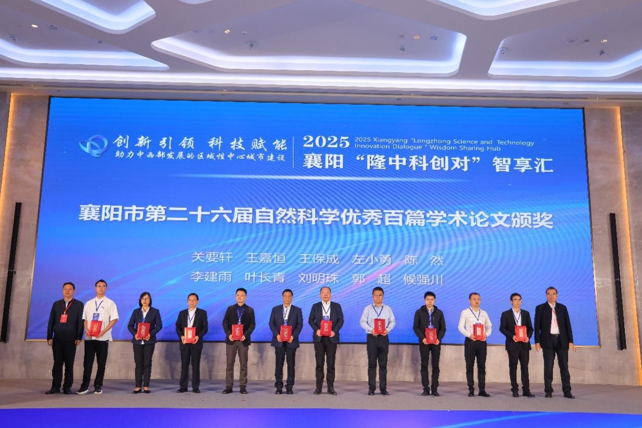 (资环学院 通讯员 邓洁屹)9月22日,由襄阳市科学技术协会主办的2025襄阳“隆中科创对”智享汇活动在襄阳隆重举行。活动期间,襄阳市第二十六届自然科学优秀学术论文评选结果正式揭晓并为一等奖获奖代表举行了隆重的颁奖仪式。我校资环学院郭超教授作为通讯作者的论文《2000—2020年汉江流域中上游地区植被空间格局变化特征》获得一等奖,并作为获奖代表上台领奖。