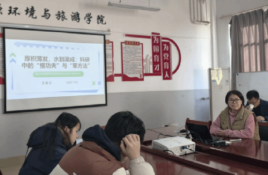 王丽莎老师以“厚积薄发,水到渠成”为核心,通过自身学习科研经历阐述了在当今快节奏科研环境下坚守“慢功夫”与“笨方法”的重要意义。她指出,研究生阶段是打下科研基础的关键时期,“慢”不是拖延,而是系统训练与能力积累;“笨”不是低效,而是扎实严谨与深度理解。